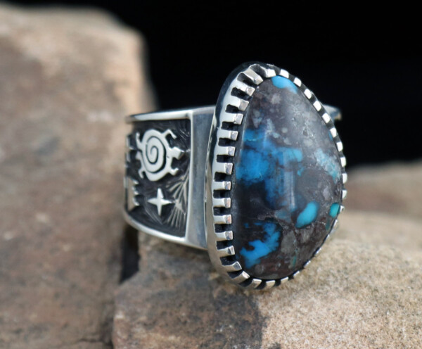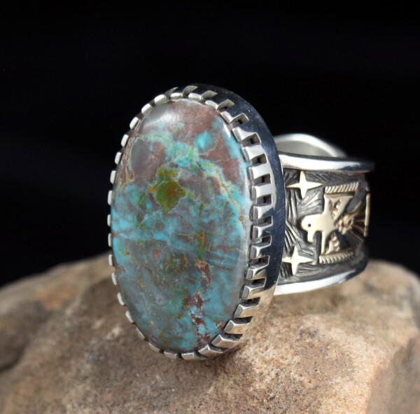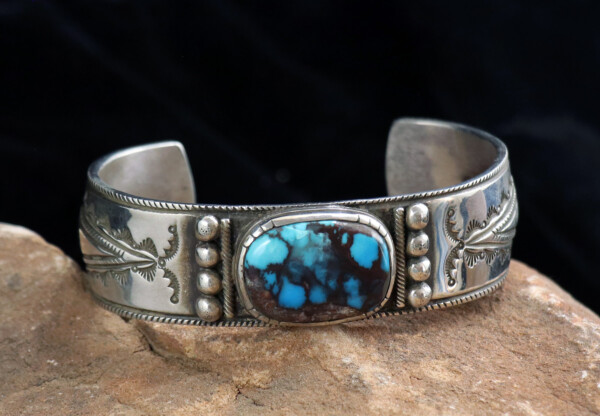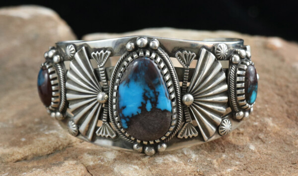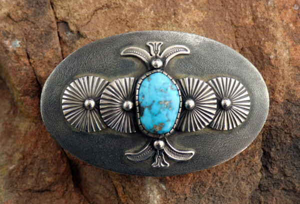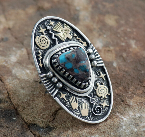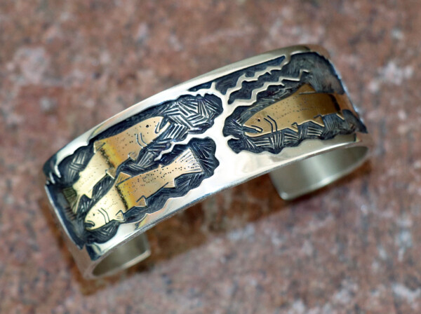 A Navajo born in Bluff, Utah, Arland is from the Edgewater Clan and is best known for his overlay gold and silver jewelry which features hand-cut designs and rare turquoise. He is an award-winning jeweler who has received numerous awards. Arland now resides in Estancia, New Mexico.