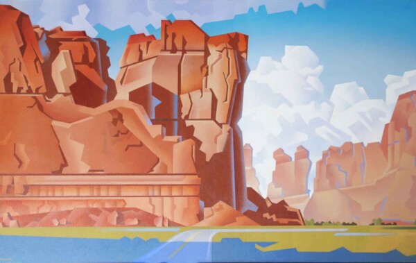 Jonason fills his palette with the intense natural colors of the region, distilled to their very essence: fiery reds, deep crystalline blues, emerald greens, earth tones so rich you can almost feel the rocks and soil beneath your feet. He portrays the Southwestern landscape with a realist’s eye, rendering it with a clarity that makes his paintings remarkably real, uncannily present.
