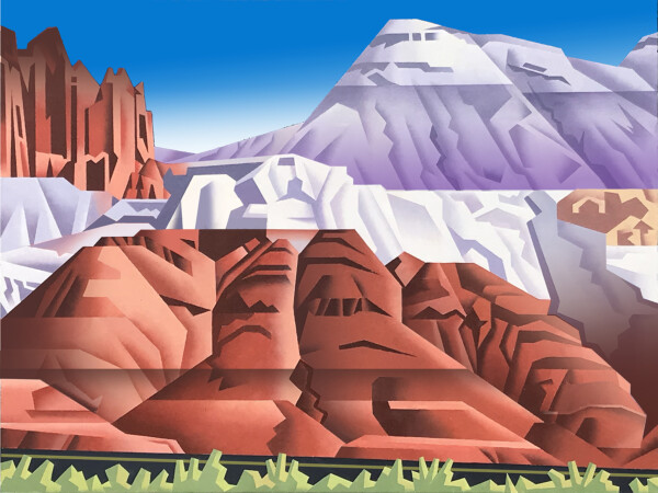 Yet, he also filters those images through an artistic sensibility steeped in his love and appreciation for Cubism, which broke up and rearranged familiar objects to portray them with fresh new insight; Futurism, which instilled art with the energy and drive of the Modern Age; Precisionism, which rendered its subjects in precise, simplified form; and Art Deco, which imbued everything from architecture to fashion, jewelry to art, with graceful style and elegance. “I’ve always liked images that are stylized and streamlined,” he explains.