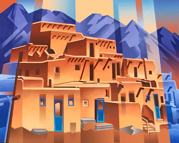 Naturally, his love of the Southwest also inevitably attracted him to works by the Taos School, artists from across Europe and America who, in the early 20th century, were attracted to and inspired by the light, landforms, and native arts of northern New Mexico. Artists like Andrew Dasburg, Ernest Blumenschein, Nicolai Fechin, Harold “Buck” Weaver, and others cross-pollinated the artistic foment of the Old World with the palette and culture of the New World to create styles of art that were uniquely American. And another signature artist of the Southwest, Maynard Dixon, renowned for his simplified modernist images of the West, also continues to inspire.