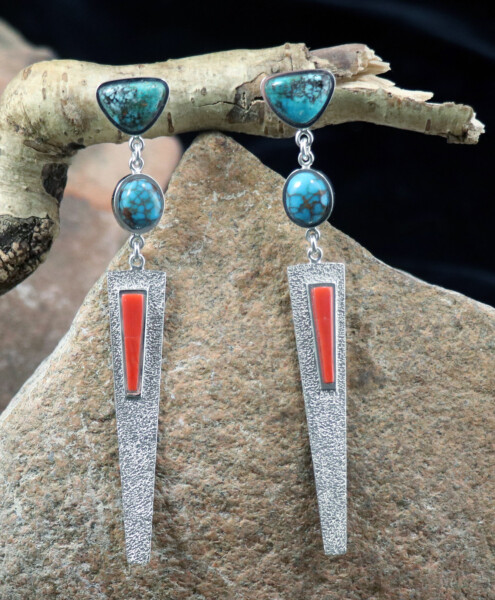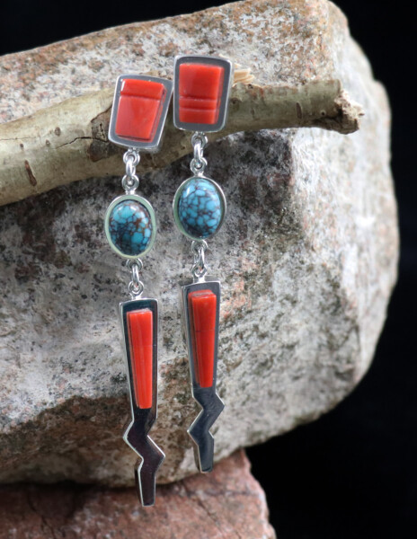 Bisbee Turquoise & Coral 18KY Heshi Dangle Earrings