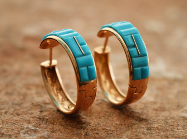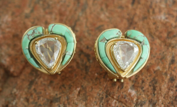18kt White Gold Earrings, Semi-Mount, 1.45cts Diamonds, Sonoran Gold Turquoise Center StoneGL MILLERPalace Jewelers