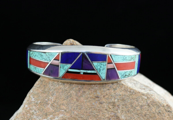 14kt Gold, Sterling Silver Radius Cut Bolo with Lapis & Birds Eye Kingman TurquoiseGL MILLERPalace Jewelers