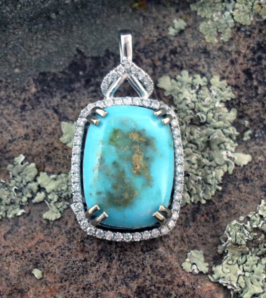 14kt White Gold Pendant, Semi-Mount, .37cts Diamonds with Bisbee Turquoise Center StoneGL MILLERPalace Jewelers