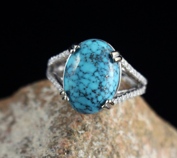 14kt White Gold Ring, Semi-Mount, .84cts Diamonds with Kingman Natural Turquoise Center StoneGL MILLERPalace Jewelers