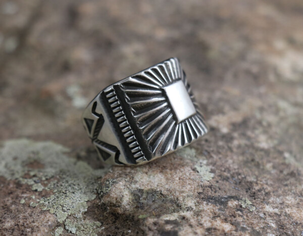 Harrison has developed a unique style that sets his work apart from others in the industry. He blends traditional Navajo techniques with contemporary designs, resulting in pieces that are both modern and rooted in tradition. His attention to detail and use of high quality materials have earned him a loyal following among collectors and admirers alike. His designs are reflective of bright stars in the New Mexico nights and his geometric forms, of the landscape. With his sleek and contemporary shapes and designs, he manages to balance the flavor of tradition along with his stylized approach to Indian imagery. The colorful and innovative inlays in his jewelry are inspired by the natural gifts that Mother Earth and Father Sky provide to each and every one of us.