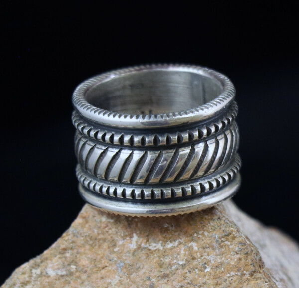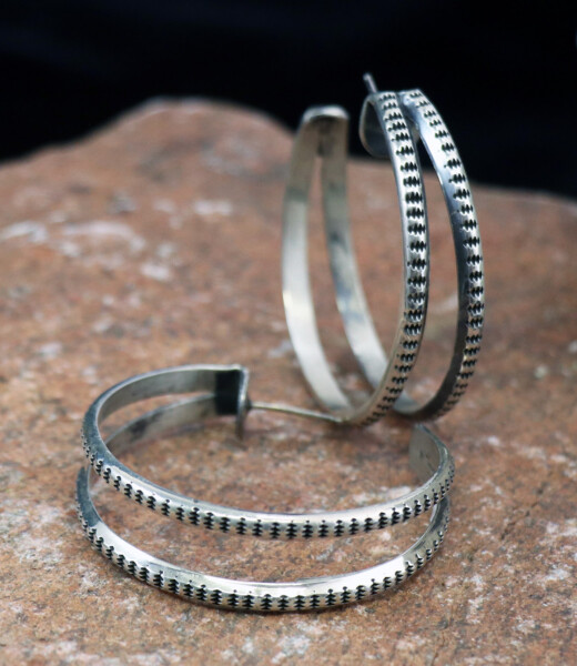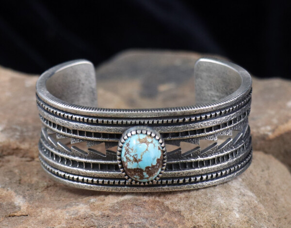 Harrison Jim is Navajo and a member of the Red House Clan. Born and raised in Gallup, New Mexico. Growing up, he was exposed to the traditional arts through his aunt and grandmother who often wore beautiful pieces and would also weave rugs at home. This early exposure sparked a strong interest in the arts for him. Harrison honed his skills by apprenticing under renowned jewelers such as John Hall, Tommy Jackson, and McKee Platero. These mentors not only taught him the technical aspects of jewelry making, but also instilled in him a deep respect for the traditional Navajo methods and materials. Harrison also pursued formal training through various workshops and classes to further refine his craft.