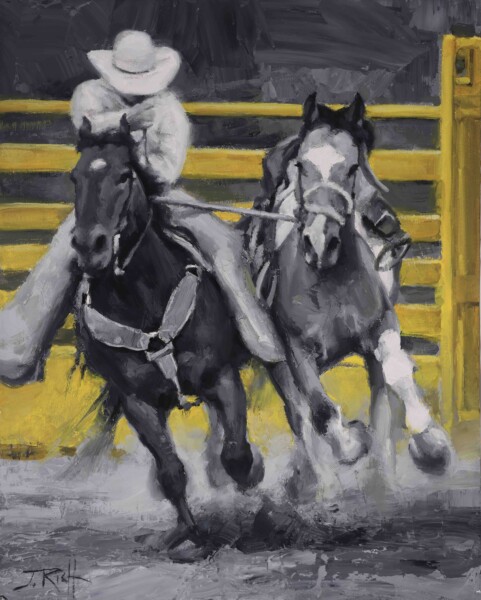 Jason Rich grew up on a small farm in southern Idaho riding, training and drawing horses. Western roots and artistic passion influenced his decision to complete undergraduate and master’s degrees in art at Utah State University and pursue art professionally. In the years since, Jason has established himself in the western art market in prestigious shows – winning numerous awards such as the 1997 Arts for the Parks Grand Prize, accolades and feature exposure in esteemed publications including Art of the West, Southwest Art, Western Art Collector and Cowboys & Indians for his distinct depiction of western life.