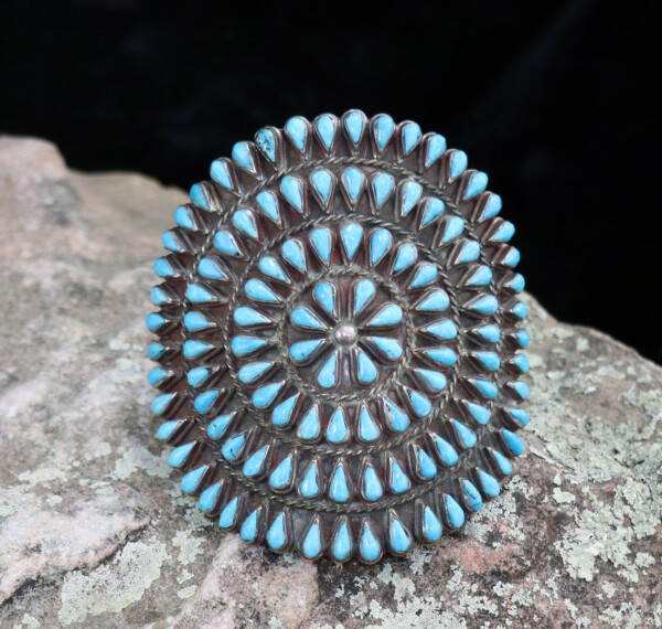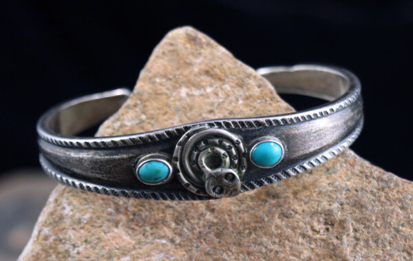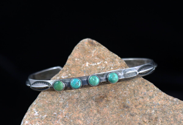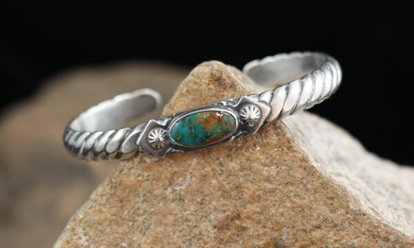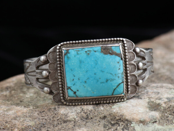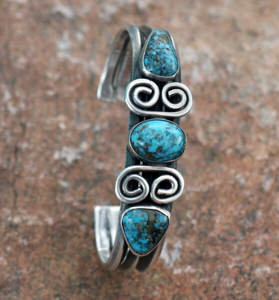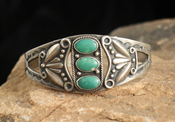 Petite Vintage Navajo Sandcast Sterling Silver Turquoise Cuff BraceletJEWELRY COLLECTOR’S ROOMPalace Jewelers