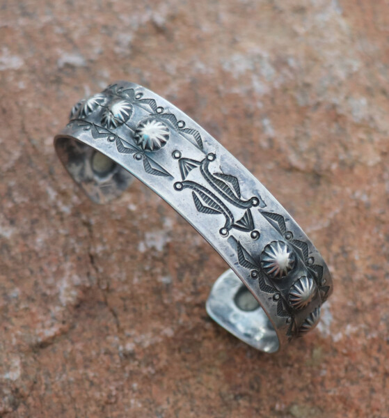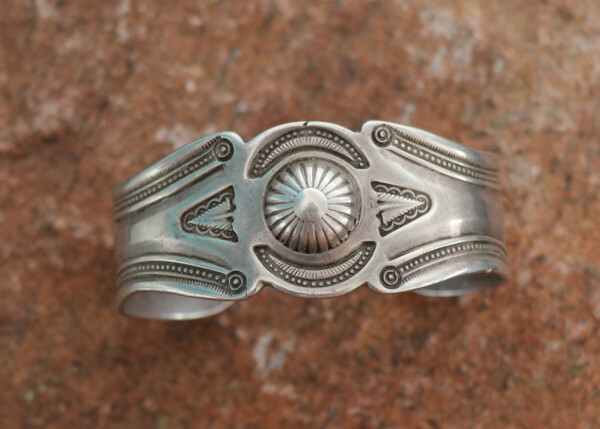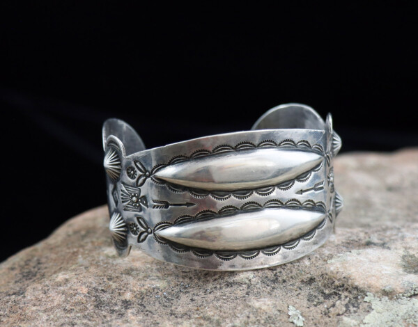 Silver Cuff w/ a Double Repousse’ Design w/ Thunderbird, Button & Stamping AccentsJEWELRY COLLECTOR’S ROOMPalace Jewelers