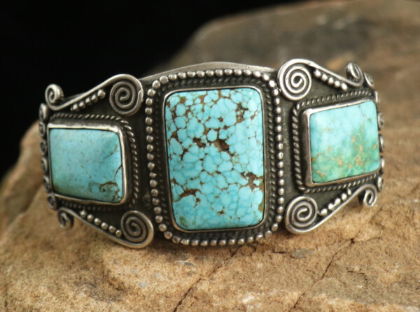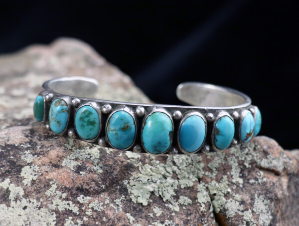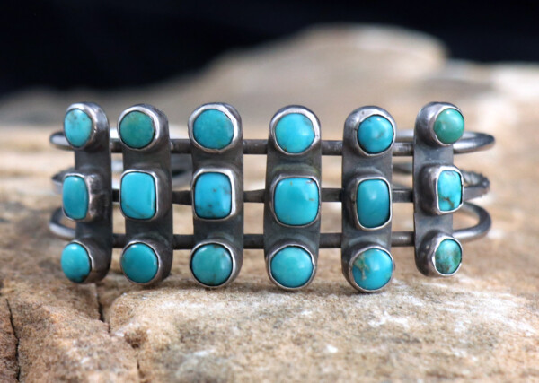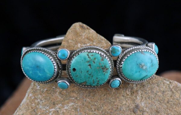 Eight Small Turquoise Stones Plus Three Larger Turquoise Stones W/ a Triple Shank Navajo Cuff ca.1930’sJEWELRY COLLECTOR’S ROOMPalace Jewelers