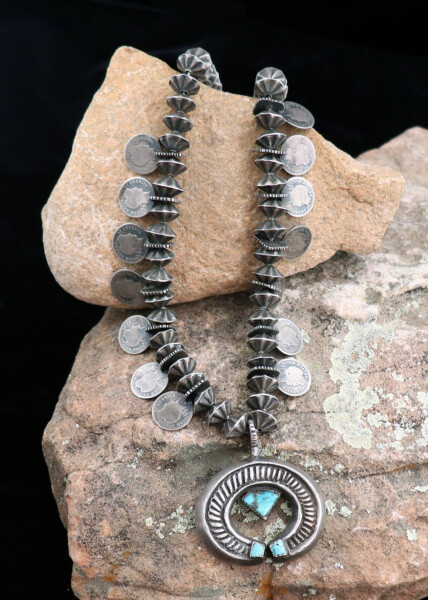 Navajo Squash Blossom Necklace w/ Liberty Dimes Circa 1920-30sJEWELRY COLLECTOR’S ROOMPalace Jewelers