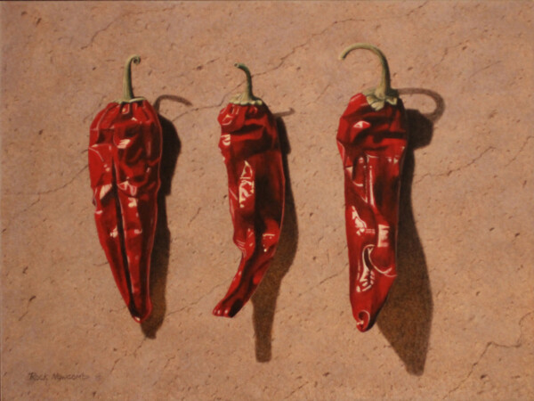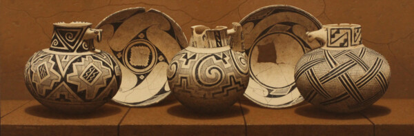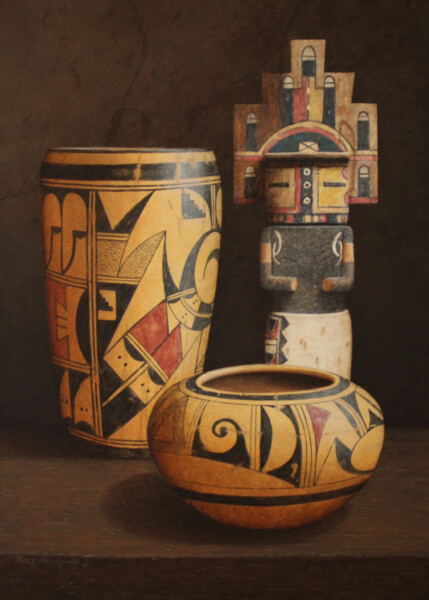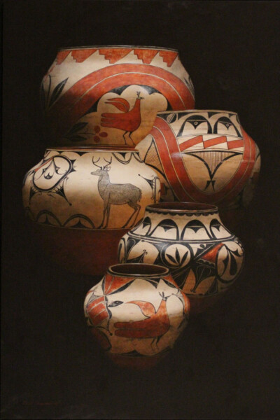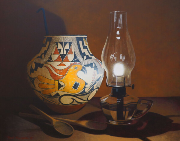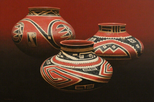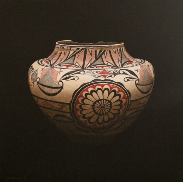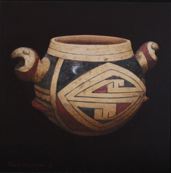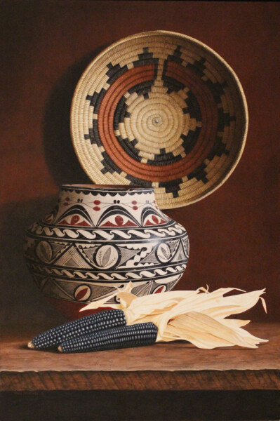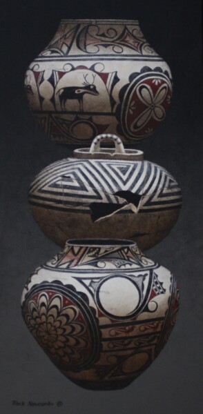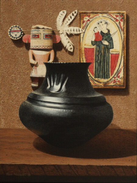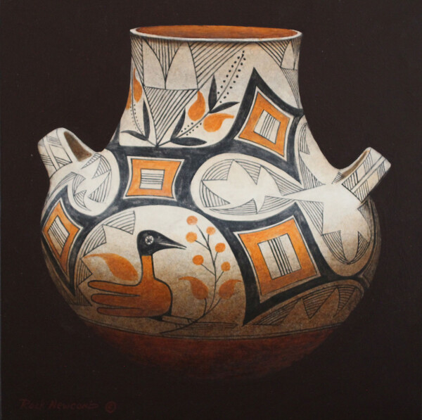 Many of the works by Rock Newcomb include subjects the audience may never encounter in person due to their rarity and inaccessibility. Painting primarily with acrylics, he utilizes techniques previously acquired while using oils and watercolors. He paints layer upon layer of thin glazes to achieve a glow and depth seldom seen in this medium. Subjects include Western artifacts, historic and prehistoric; Native Americans and cowboys; various still life; landscapes and wildlife. Rock has shown at varied establishments, galleries and shows including The Smithsonian Institute, Laguna Beach Museum of Art, and recently a Solo Show at Casa Romantica in San Clemente, CA. He participated in a PBS Television series, “The Artists Workshop,” featuring his painting and drawing techniques. Rock has been featured in numerous magazines including Southwest Art, Western Art Collector, The Artists Magazine, International Artist and Art of the West, among others.
