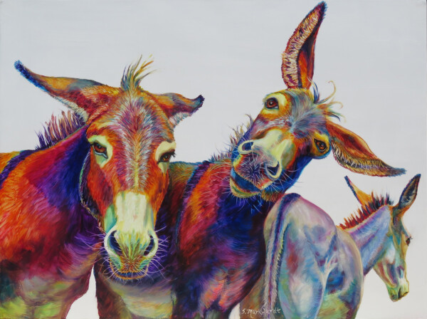 Currently, the subjects Sharon enjoys exploring most are animals, especially those found on the ranch, and their relationships with each other and with us. She believes they have personalities, and seeks to expose that “soul”. It is often reflected in the expressive eyes, which convey a rainbow of emotions. Animals share a closer connection with the living universe than do people with all their technology. Studying animals and bringing them to life on a canvas allows her to tap into that creative spirit and energy. She feels very fortunate to be able to see her neighbor’s Texas longhorns from her studio, and to have horses, dogs, and a miniature donkey on her own property. Her vet even introduced her to a nearby herd of bison, or buffalo, who also serve as subjects. With the recent acquisition of a second studio/home in Santa Fe, a whole new adventure is starting!