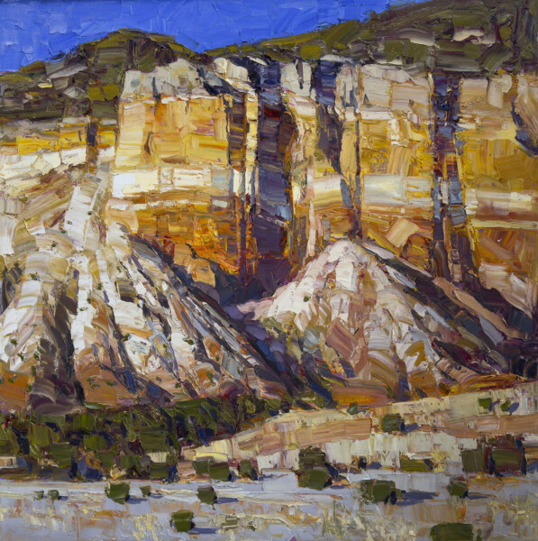 Much of his childhood was spent deep in the backcountry alongside his father, where he came to recognize the distinct “birthmarks” of the American landscape: from valleys and high deserts to mountain peaks and winding rivers still carving the earth. These experiences embedded a desire in him to create artwork that doesn’t just depict nature, but evokes memory, emotion, and the physical presence of a place. His paintings strive to capture the illusion of time, solidity, and movement—imbued with a sense of risk, wonder, and reverence.