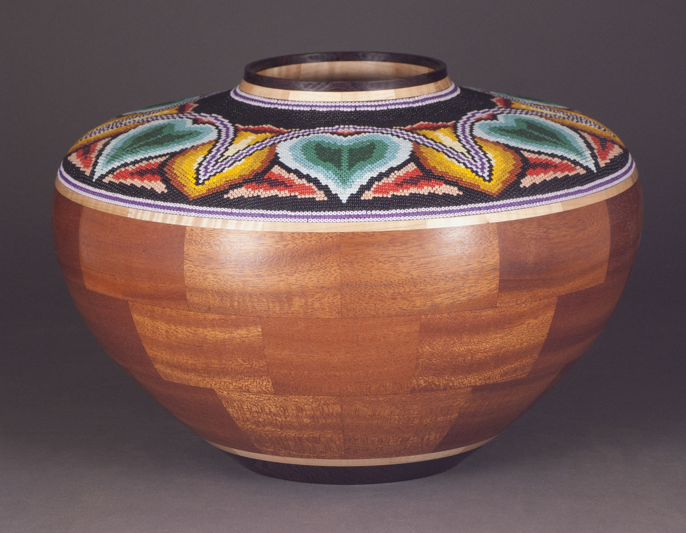 13″ Beaded Seed Pot Green Lotus