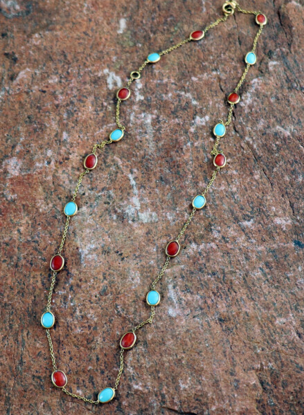 Inquire about 18″ – 18kt Turquoise and Coral Necklace