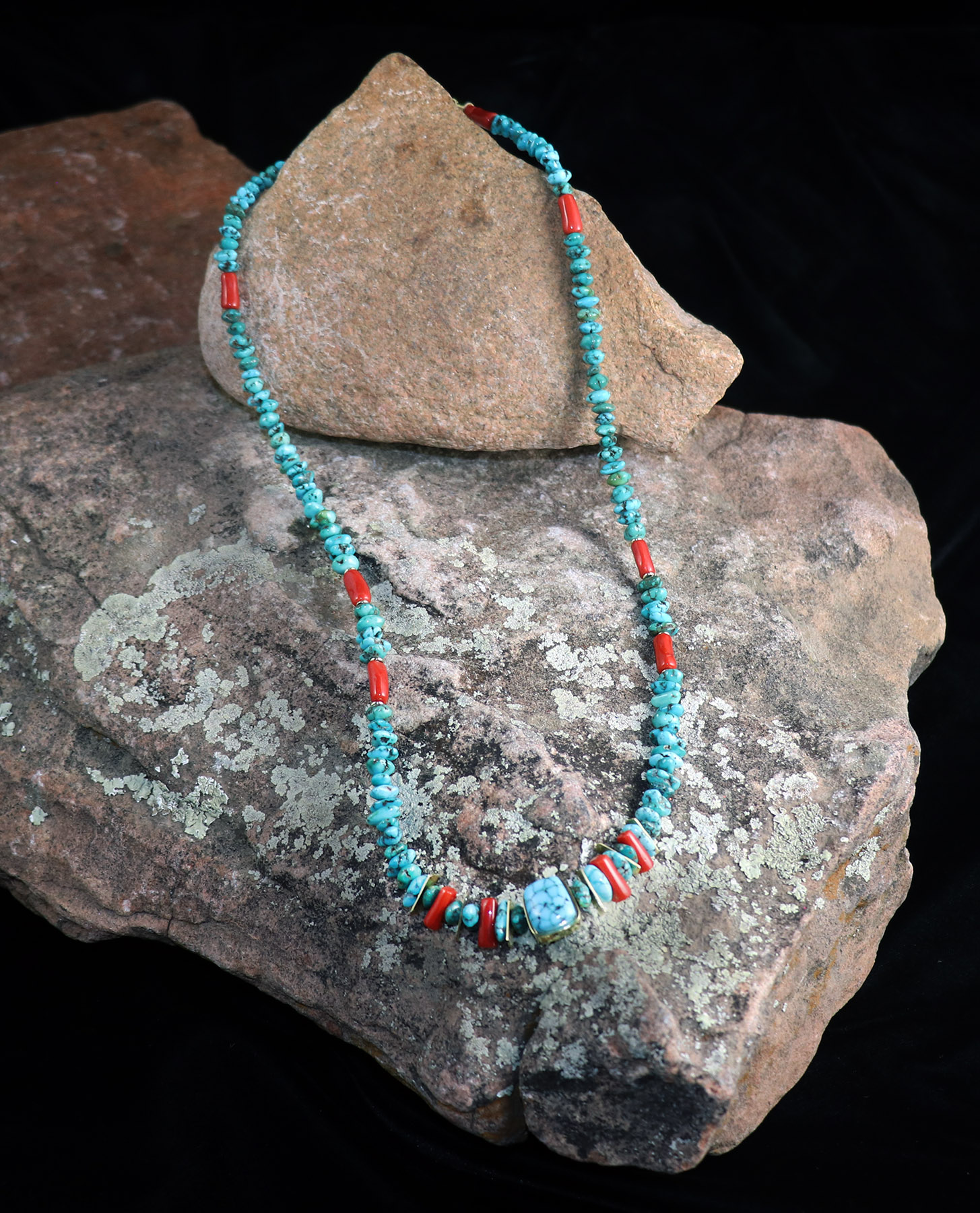 18K, Turquoise, & Coral Necklace
