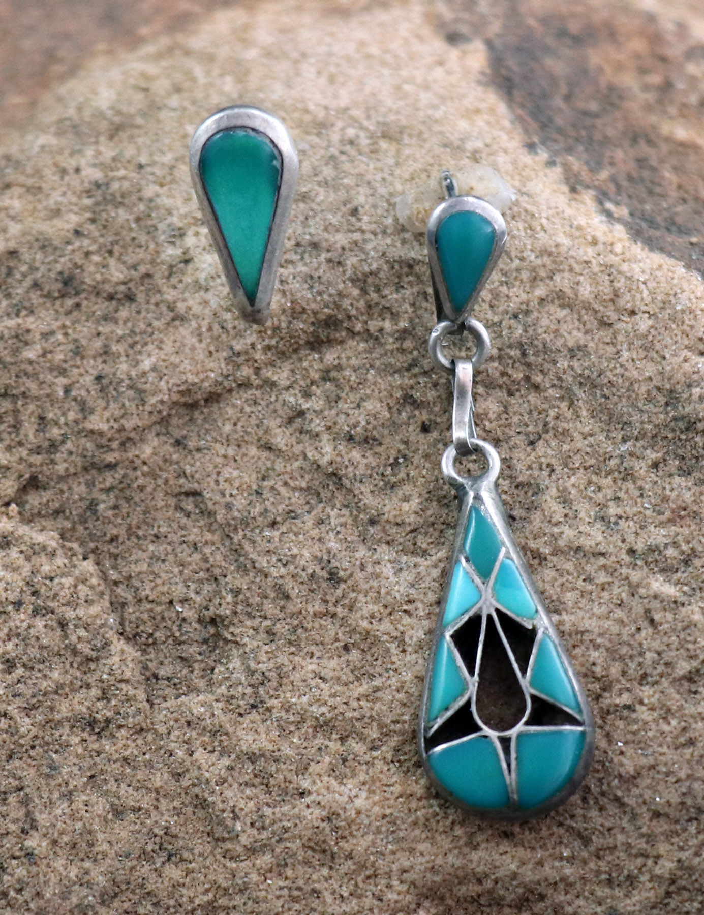 Asymmetrical Earrings – One Turquoise Stud & One Teardrop Turquoise Drop Dangle