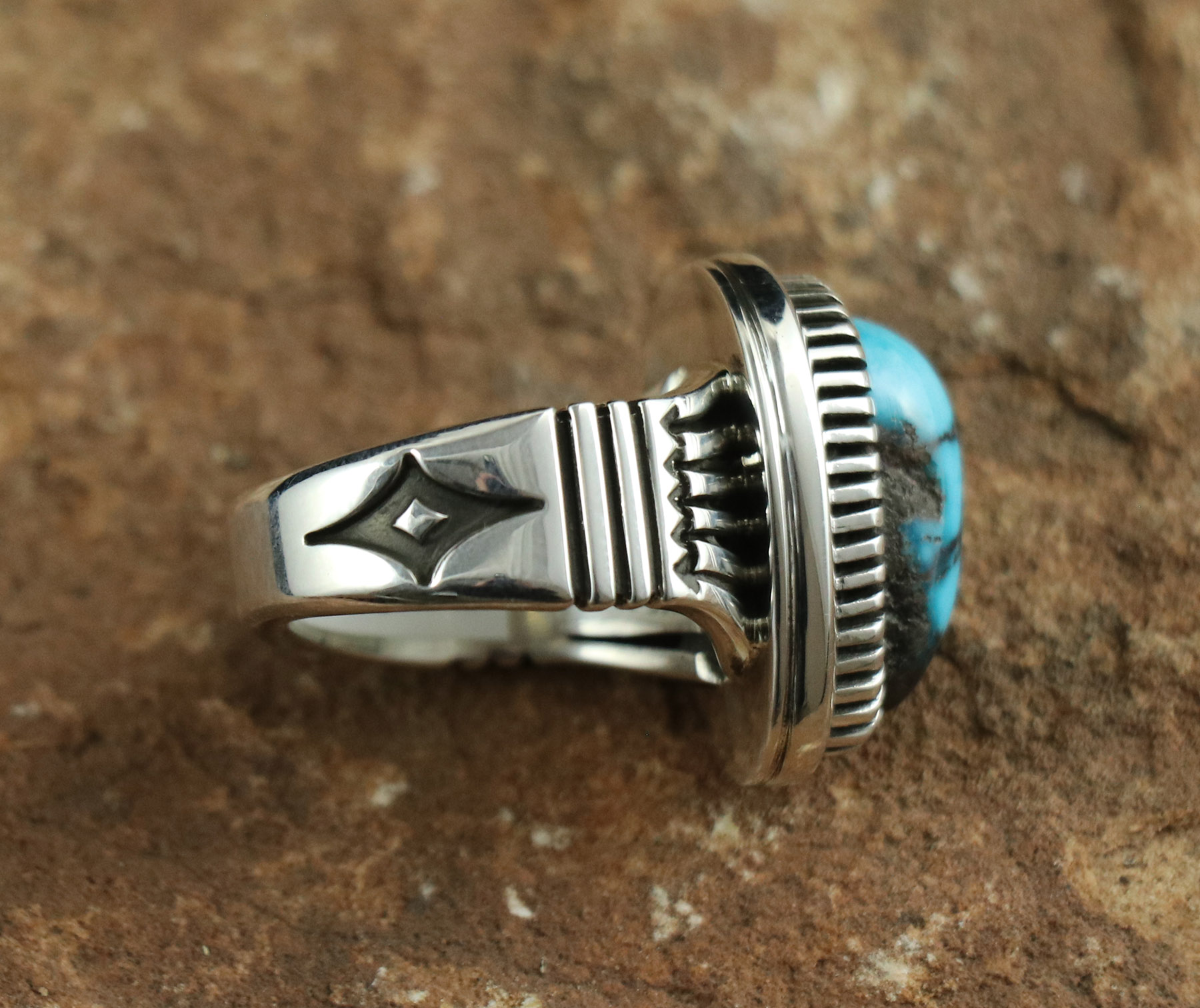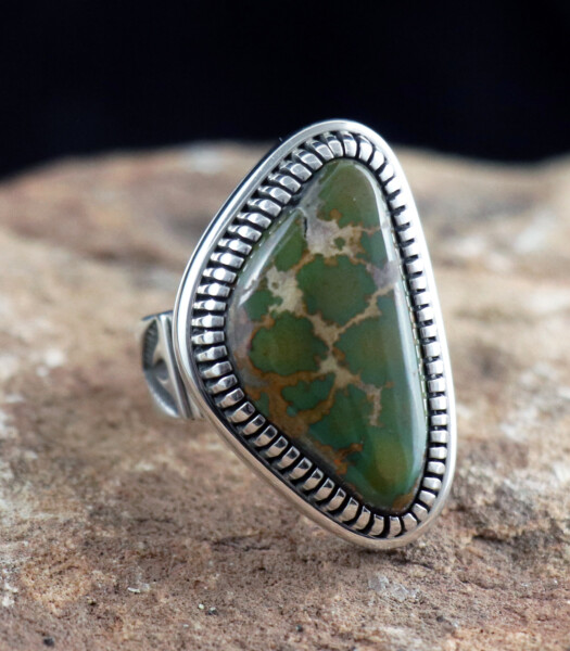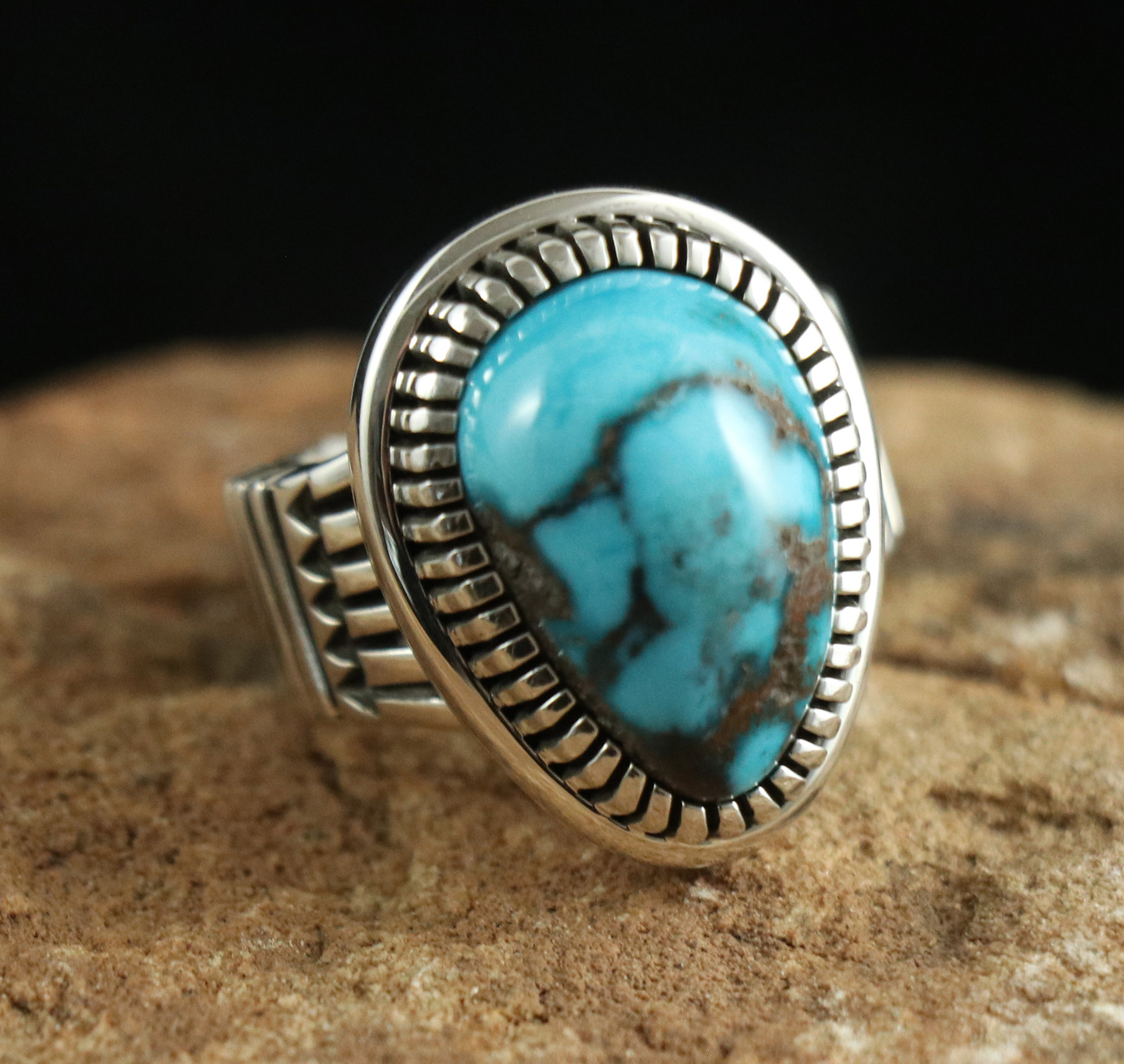 Hand Stamped Ring with Bisbee Turquoise 15.94cts