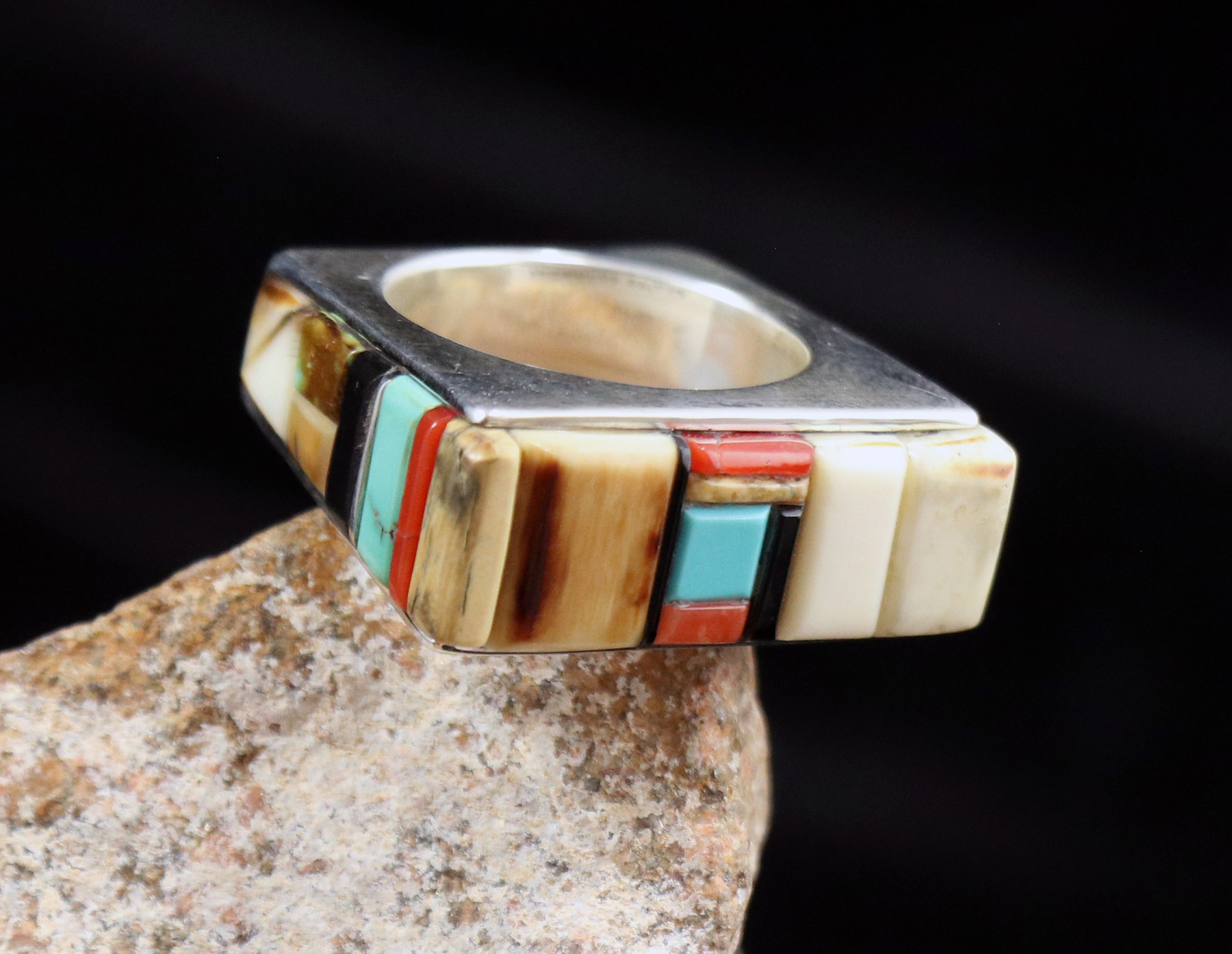 Inlay Stacker Ring Multi Inlay – Ivory, Turquoise, Coral, & Black Jasper