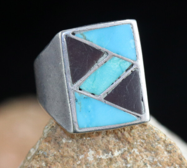 Jet and Turquoise Inlay Ring