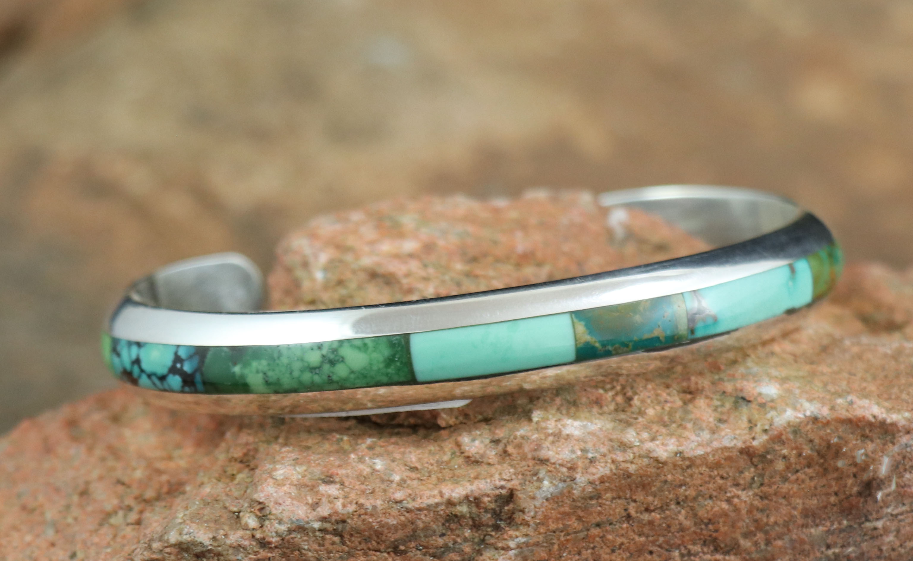 Large Narrow Assorted Nevada Green Turquoise Bracelet
