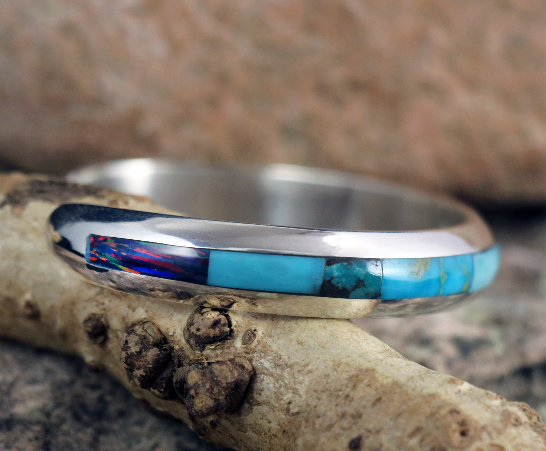 Narrow Medium Assorted Turquoise & Synthetic Opal Inlay Cuff