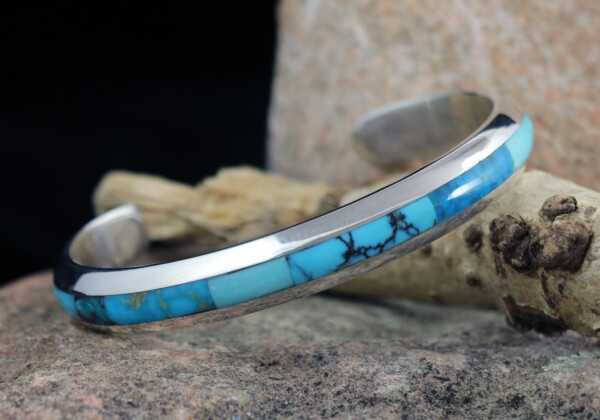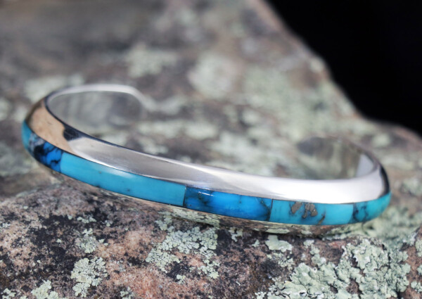 Narrow Large Size Assorted Turquoise & Synthetic Opal Inlay Cuff