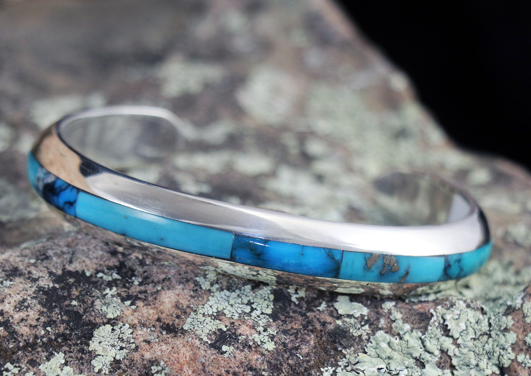 Narrow Medium Assorted Turquoise & Synthetic Opal Inlay Cuff