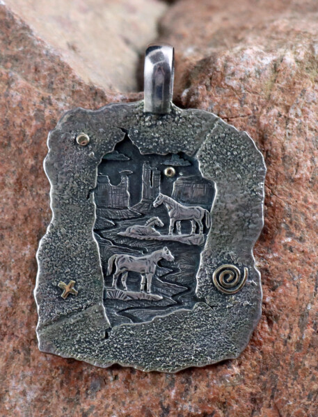 An elegant combination of silver and stone in this Dine’-Navajo attributed ingot silver cuff, featuring two