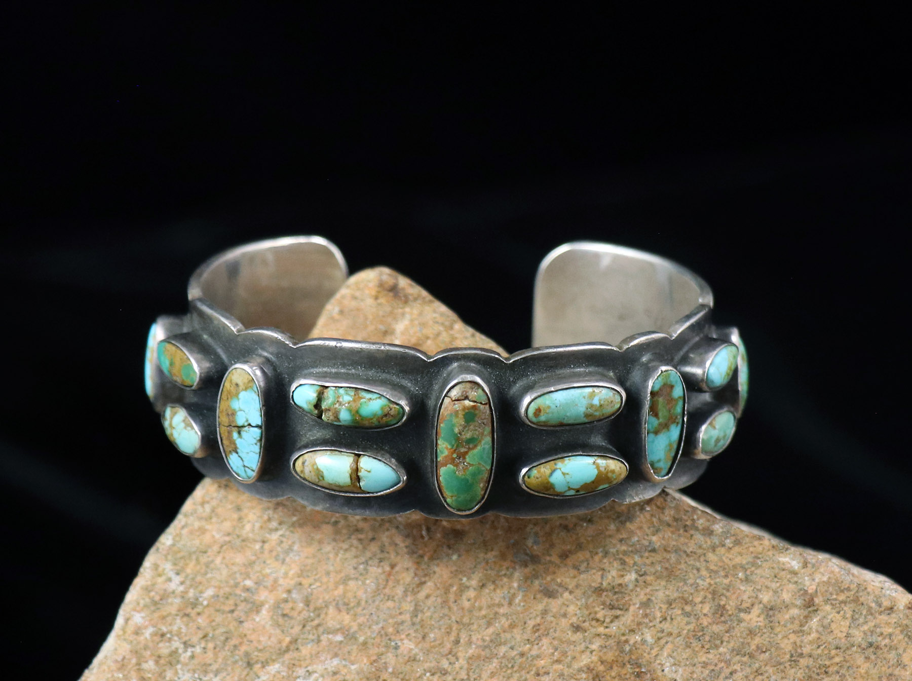 Silver Cuff w/ Thirteen Assorted Oval Turquoise Stones