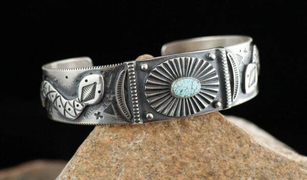Sterling Silver Bracelet with Snake and #8 Turquoise Stone