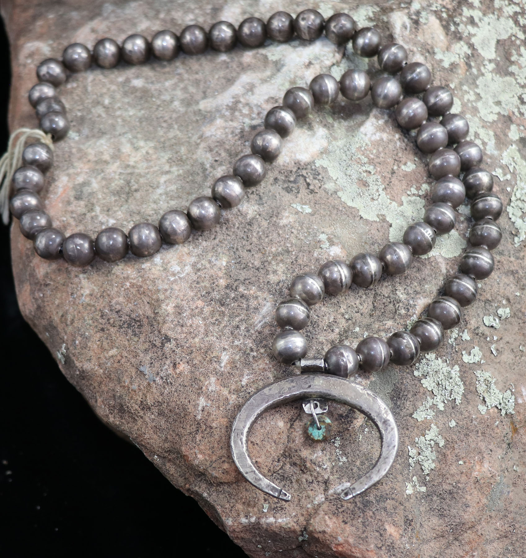 Sterling Silver Pearls & Naja Pendant w/ Turquoise Bead