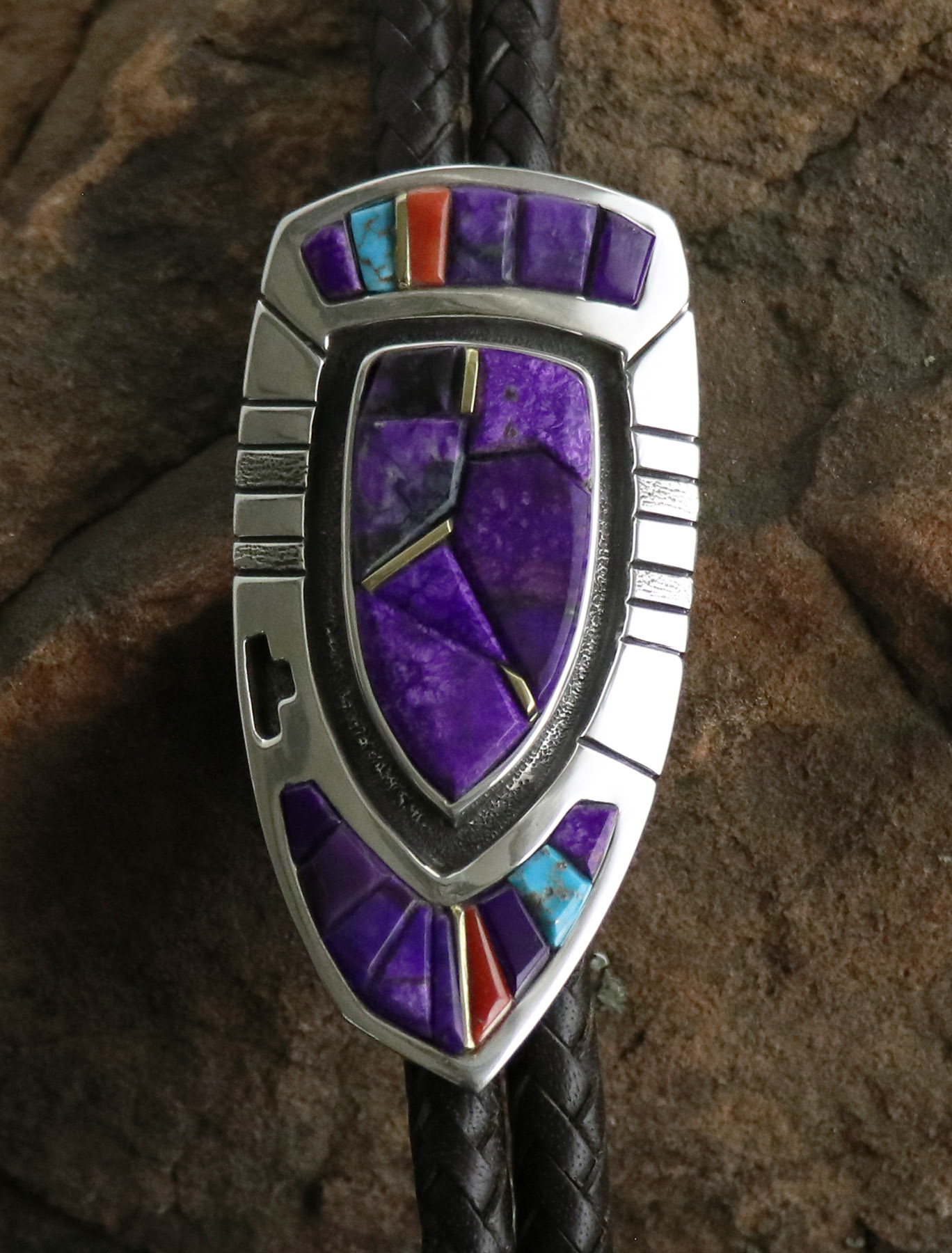 Sugilite, Coral, & Turquoise Inlay Bolo