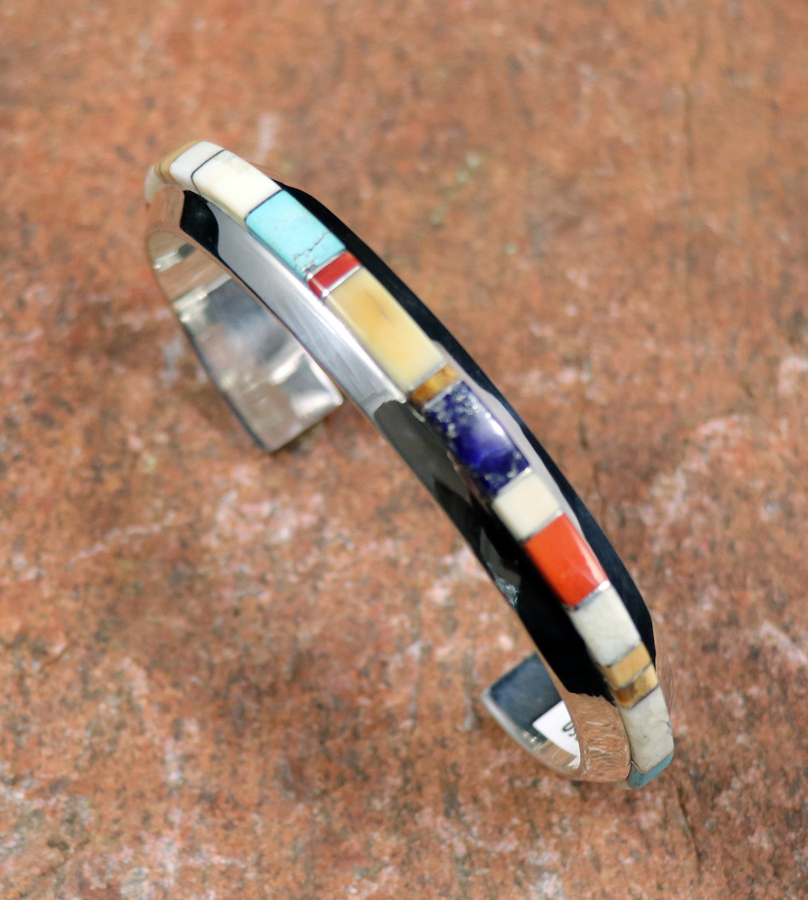 Thin Fossilized Ivory, Turquoise, & Coral Bracelet