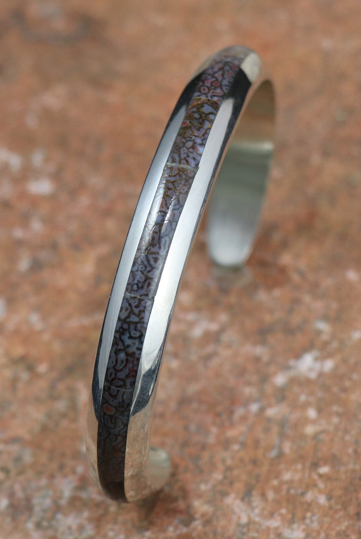 Thin Large Utah Dinosaur Bone Inlay Cuff