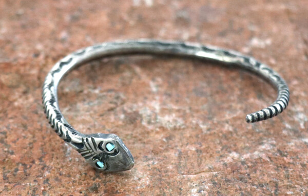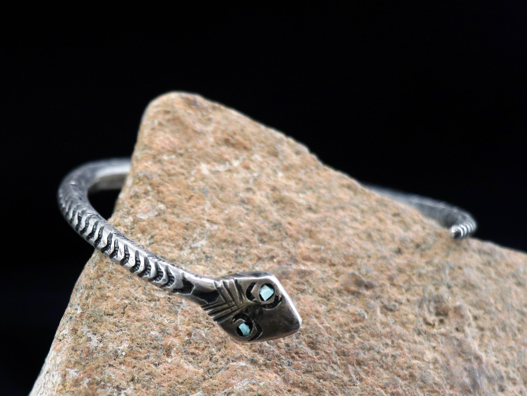 Thin Sterling Silver Snake Bracelet w/ Turquoise Stone Eyes