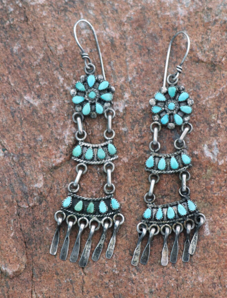 Turquoise Cluster Dangle Earrings w/ Fringe